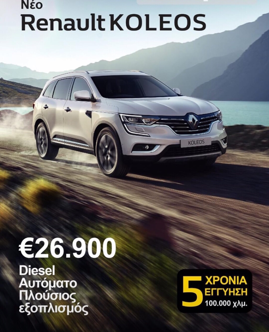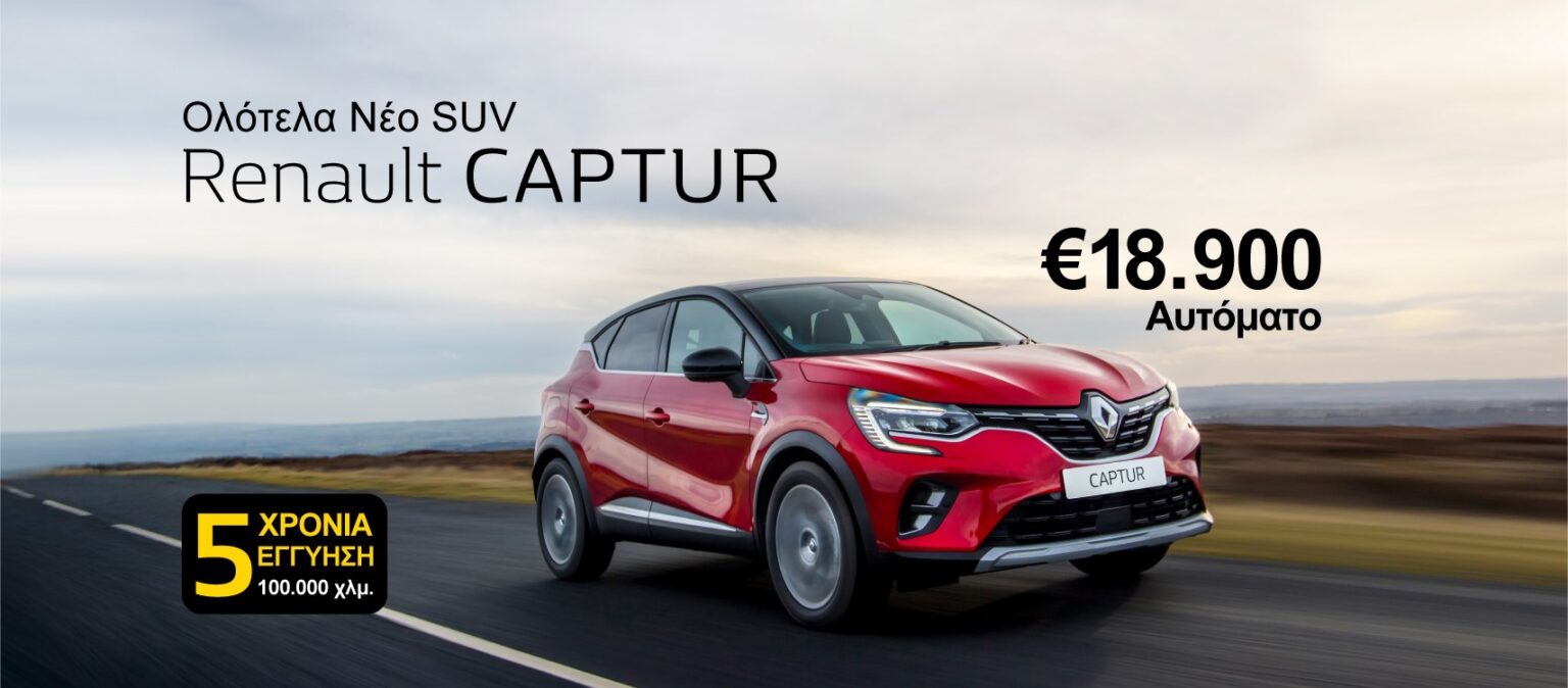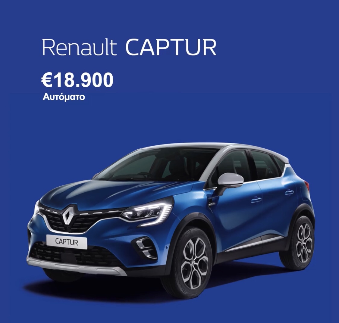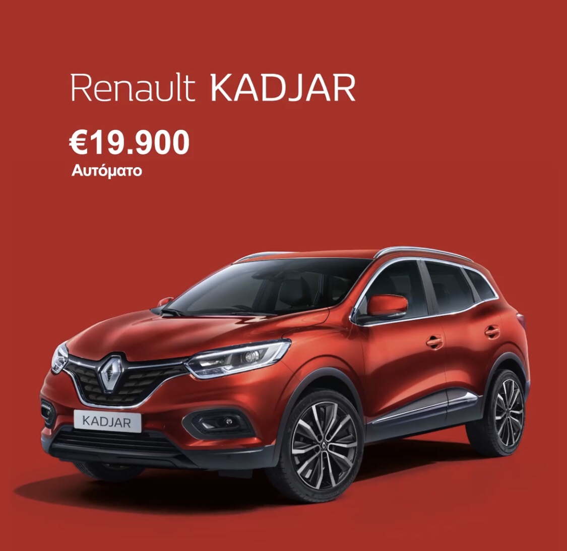 Επωφεληθείτε από τις μοναδικές καλοκαιρινές προσφορές: το ολοκαίνουργιο Renault Captur με μόνο 18.900 ευρώ αυτόματο, το Renault Kadjar με μόνο 19.900 ευρώ αυτόματο, το Renault Koleos με 26.900 ευρώ αυτόματο και το Dacia Duster στην απίστευτη τιμή των 13.900 ευρώ!