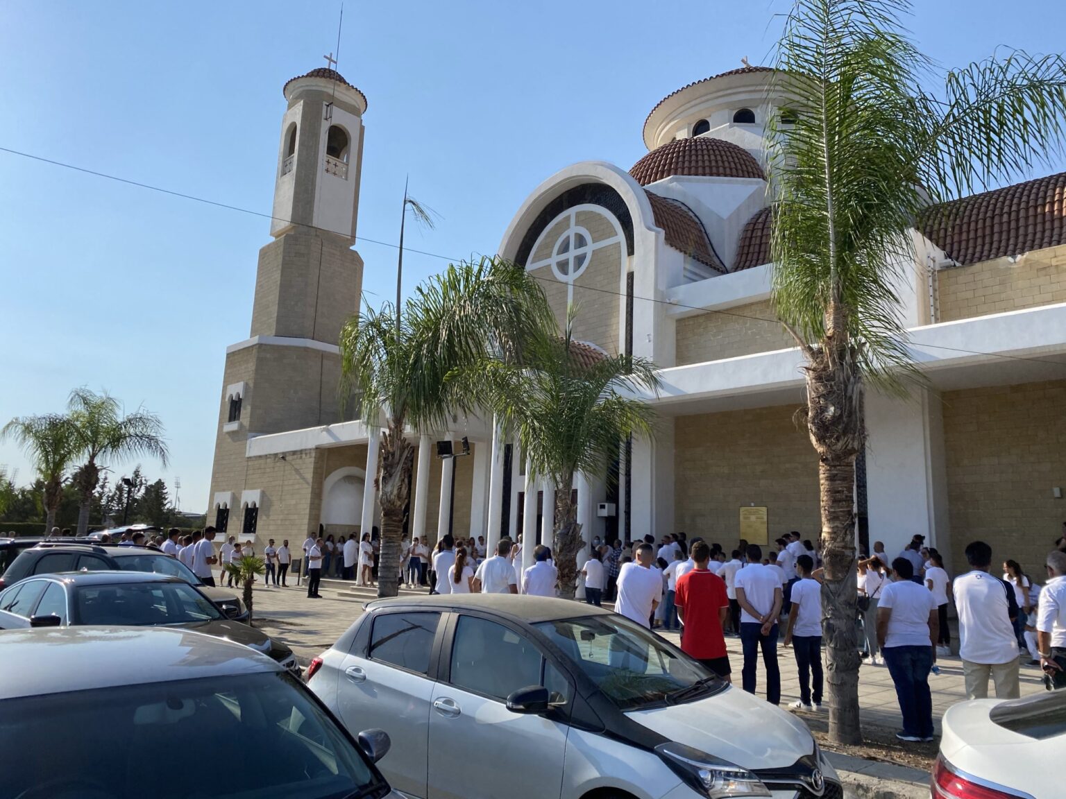 Όπως ήταν η επιθυμία της οικογένειας, όσοι βρέθηκαν σήμερα στην κηδεία ντύθηκαν στα λευκά αποχαιρετόντας το Νικόλα με αυτό τον τρόπο.