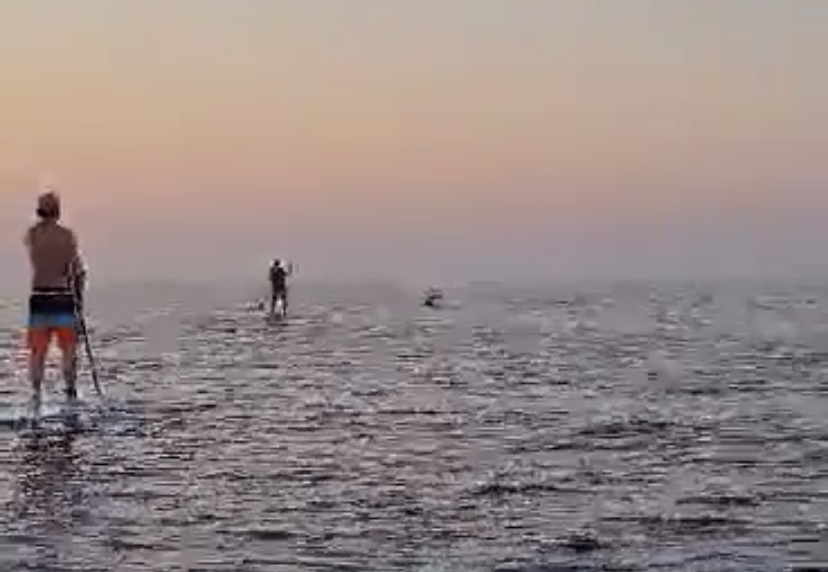 Όπως αναφέρει ο κ. Κουκουμάς που κατέγραψε τα βίντεο, τα δελφίνια βρίσκονταν πολύ κοντά στις σανίδες τους δίνοντας τους την ευκαιρία να καταγράψουν τα όμορφα πλάνα.