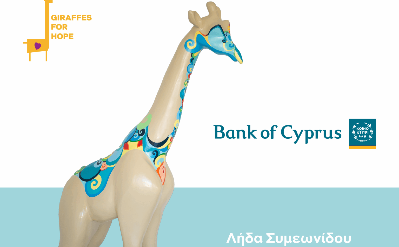 Η Τράπεζα Κύπρου συμμετέχει στην εκστρατεία «Giraffes for Hope», που διοργανώνει το «Σοφία για τα Παιδιά», τα έσοδα της οποίας θα παραχωρηθούν για τις ανάγκες παιδιών στην Κύπρο και στην Κένυα με επίκεντρο το δικαίωμά τους στη μόρφωση, την υγεία και την αξιοπρέπεια.