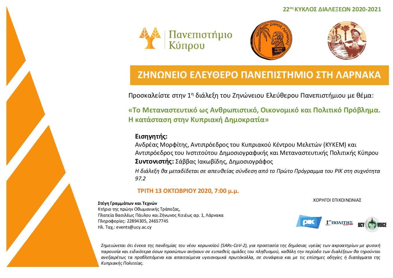 City of Larnaca > Blog > Business > Γενικά > Διάλεξη με θέμα: «Μεταναστευτικό ως ανθρωπιστικό, οικονομικό και πολιτικό πρόβλημα. Η κατάσταση στην Κυπριακή Δημοκρατία»