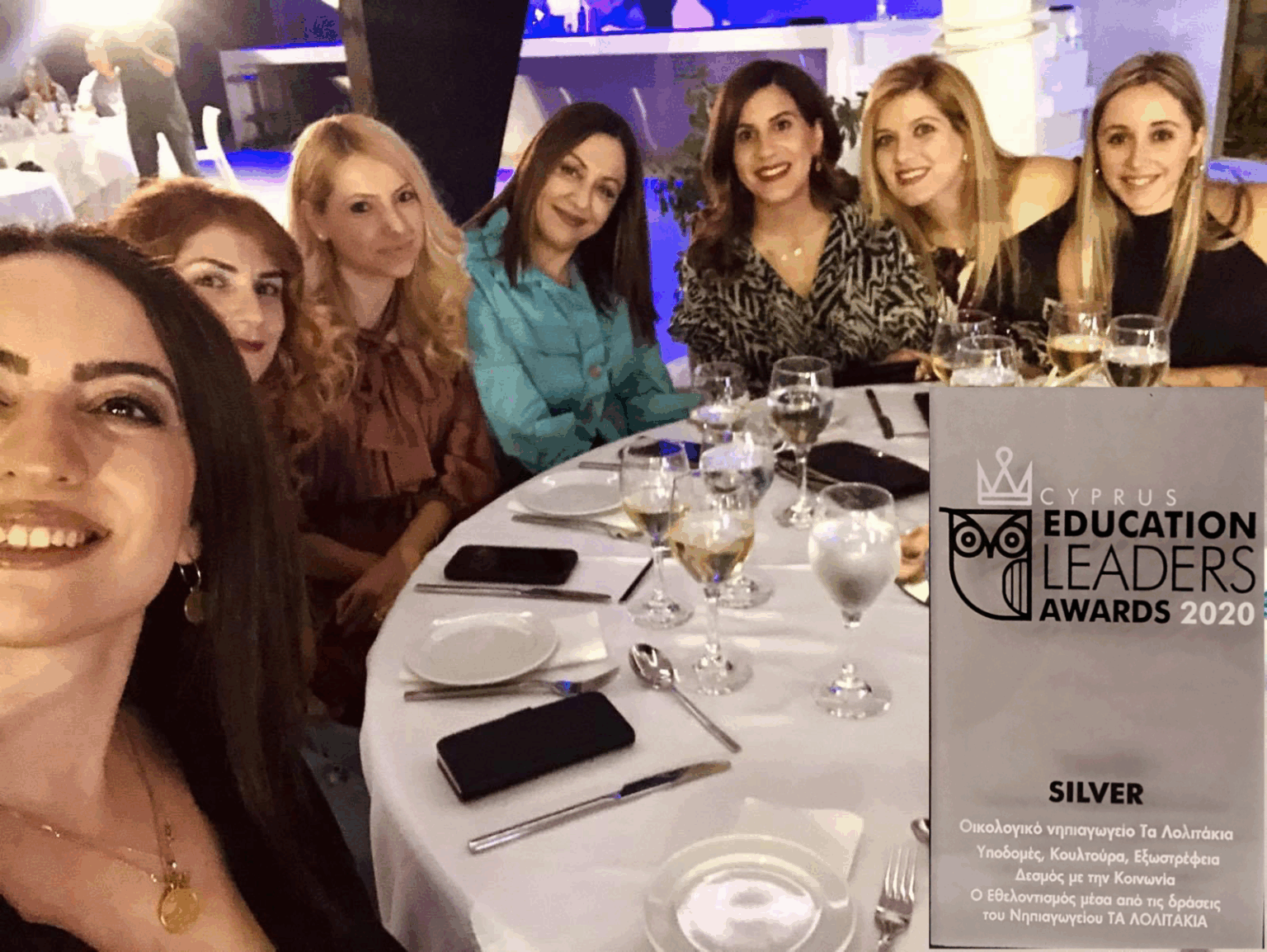 Με περηφάνια σας ανακοινώνουμε ότι έχουμε κερδίσει το silver βραβείο στην κατηγορία Δεσμός με την κοινωνία στα Cyprus Education Leaders Awards 2020. Αξίζει να τονίσουμε ότι ήμασταν το μοναδικό νηπιαγωγείο της πόλης μας που κέρδισε βραβείο και αυτό όχι μόνο μας τιμά αλλά μας δίνει τη δύναμη να συνεχίσουμε ακόμα πιο δημιουργικά και για τα επόμενα χρόνια.
