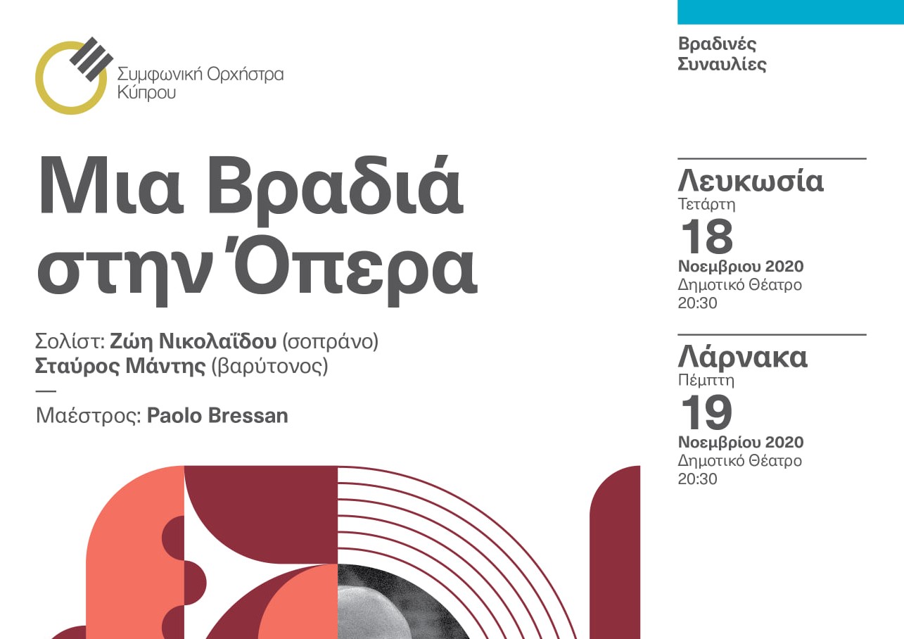 Καλούμε τους φίλους Λαρνακείς όπως έρθουν και να ζήσουν δυνατά συναισθήματα με τη Συμφωνική Ορχήστρα Κύπρου και τους εξαίρετους προσκεκλημένους μας καλλιτέχνες, τον μαέστρο Paolo Bressan, τη σοπράνο Ζώη Νικολαΐδου και τον βαρύτονο Σταύρο Μάντη σε ένα πραγματικά ξεχωριστό πρόγραμμα με διάσημες άριες από την Carmen, Le nozze di Figaro, La Traviata και πολλές άλλες.