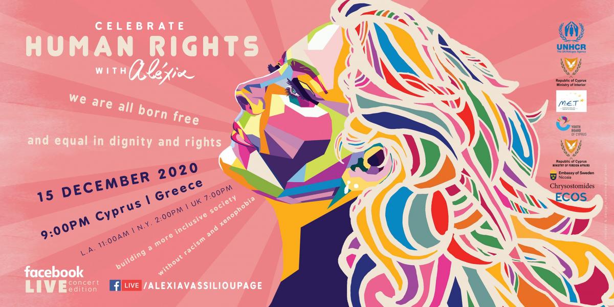 Στις 15 Δεκεμβρίου 2020, η Αλέξια εκπροσωπεί, τιμά και γιορτάζει τα Ανθρώπινα Δικαιώματα, σε μια δίωρη πολιτιστική, πολυπολιτισμική, διαδικτυακή συναυλία, αφιερωμένη στον κάθε άνθρωπο. Η συναυλία θα μεταδοθεί ζωντανά στις 9:00 μ.μ. στην επίσημη σελίδα της Alexia στο Facebook: www.facebook.com/AlexiaVassiliouPage.