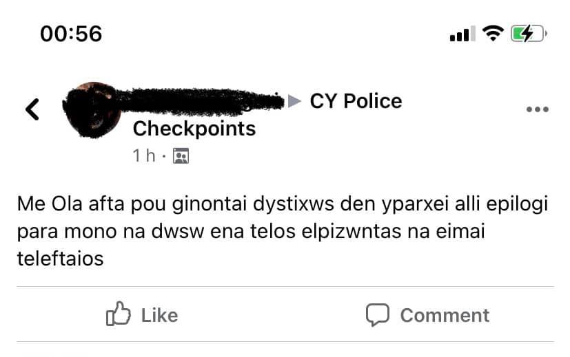 Συγκεκριμένα, ο κ. Σ. ανήρτησε το εξής μήνυμα: «Με όλα αυτά που γίνονται δυστυχώς δεν υπάρχει άλλη επιλογή παρά μόνο να δώσω ένα τέλος, ελπίζοντας να είμαι ο τελευταίος». Η ανάρτηση άφηνε ανοικτό ακόμη και το ενδεχόμενο να θέσει τέρμα στη ζωή του, με εκατοντάδες πολίτες να σπεύδουν άμεσα, ενημερώνοντας την Αστυνομία ώστε να τον εντοπίσει και να προλάβει τα χειρότερα, αλλά και γράφοντας του λόγια συμπαράστασης και στήριξης. Μέχρι τα ξημερώματα, στήθηκε ένα απίστευτα μεγάλο δίκτυο στήριξης του από άγνωστους πολίτες, οι οποίοι ανέμεναν με αγωνία ενημέρωση από γνωστούς του κ. Σ. για το τι έγινε. Κάποιοι από αυτούς που τυγχάνει να τον γνωρίζουν, ενημέρωσαν τα μέλη της διαδικτυακής ομάδας ότι εντοπίστηκε εγκαίρως από την Αστυνομία και είναι καλά. Όσον αφορά στους λόγους για τους οποίους ο άνθρωπος αυτός έφτασε σε αυτό το σημείο, πρόσωπα που τον γνωρίζουν έκαναν λόγο για ανεργία. Όπως έγραψαν, ο κ. Σ. εδώ και μήνες έχει μείνει άνεργος, με την καθημερινότητά του να είναι πολύ δύσκολη. Μία κατάσταση που βιώνουν και χιλιάδες άλλοι συμπατριώτες μας, με τα μέλη της ομάδας που έσπευσαν να στηρίξουν τον κ. Σ. να εκφράζουν την αγωνία τους για όσους βιώνουν κάτι αντίστοιχο.