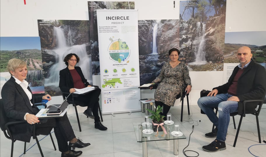 Στις 16 Δεκεμβρίου πραγματοποιήθηκε διαδικτυακή συζήτηση στρογγυλής τραπέζης με θέμα «Κυκλική Οικονομία – Προκλήσεις και Καλές Πρακτικές» η οποία διοργανώθηκε από την Αναπτυξιακή Εταιρεία Επαρχιών Λάρνακας Αμμοχώστου. Η συζήτηση αποτελεί την εναρκτήρια μιας σειράς συζητήσεων που θα ακολουθήσουν στα πλαίσια του ευρωπαϊκού έργου «Support Insular and low density areas in the transition towards a more Circular tourism Economy – INCIRCLE». Το έργο INCIRCLE στοχεύει στην εφαρμογή των αρχών της κυκλικής οικονομίας στον τουριστικό τομέα, δίνοντας έμφαση στους τομείς της βιώσιμης κινητικότητας, ενεργειακής απόδοσης και τη διαχείριση του νερού και αποβλήτων.