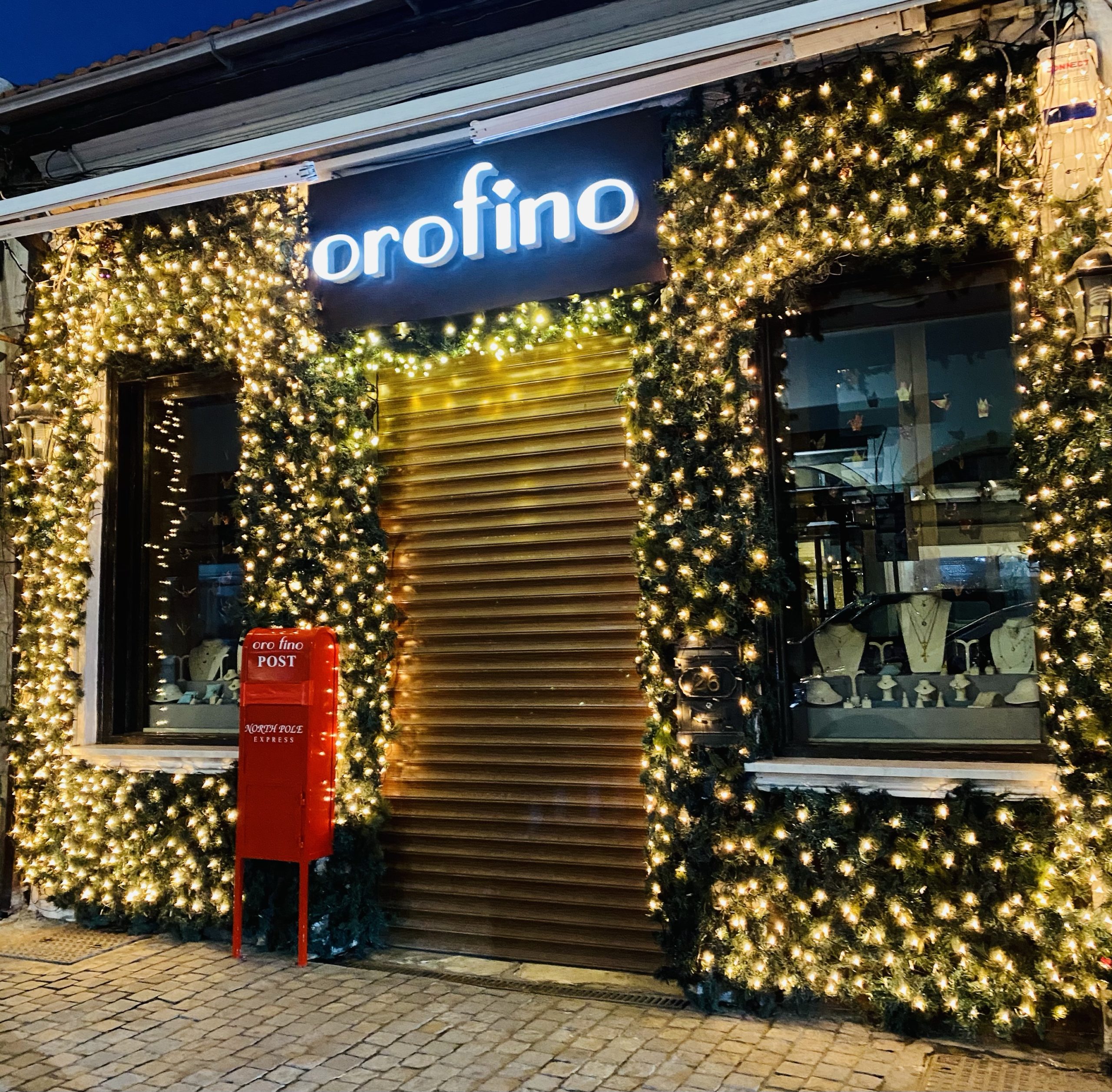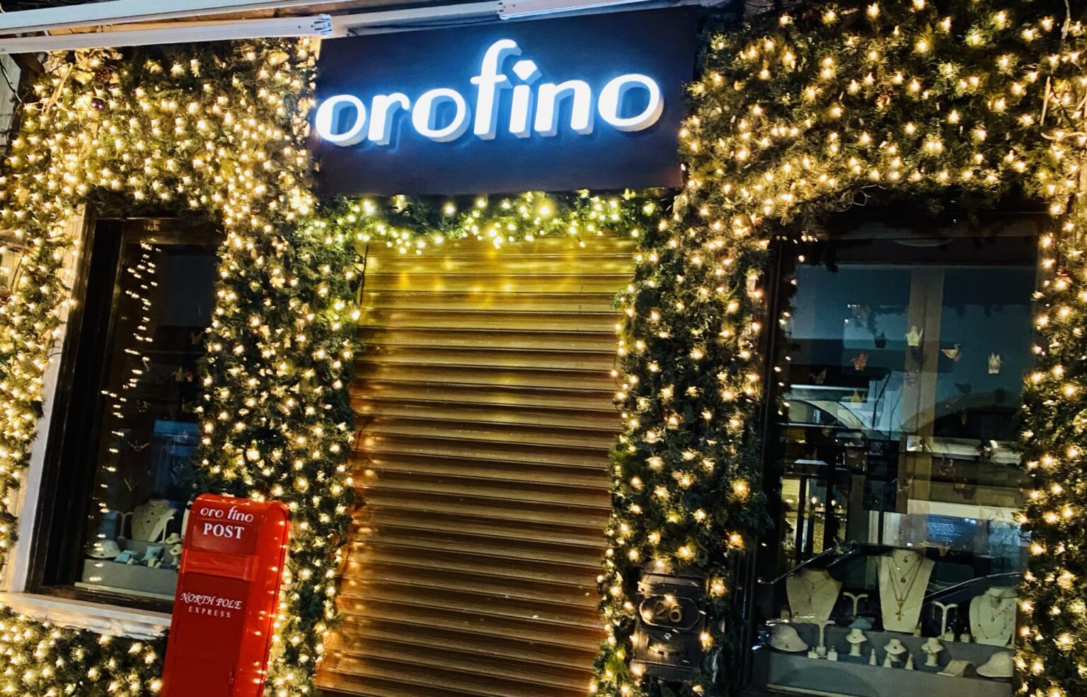 Το κατάστημα Orofino κάθε χρόνο καταφέρνει να κλέβει τις εντυπώσεις με τον όμορφο του στολισμό ο οποίος κεντρίζει το μάτι σε όποιον περάσει μπροστά απ’ αυτό. Τα πολλά λαμπιόνια μαζί με το πράσινο φόντο, αποτελούν κάθε χρόνο μια όμορφη χριστουγεννιατικη νότα και δικαίως κατα τη δική μας άποψη παίρνει τον άτυπο τίτλο της πιο όμορφης Χριστουγεννιάτικης βιτρίνας στο κέντρο.