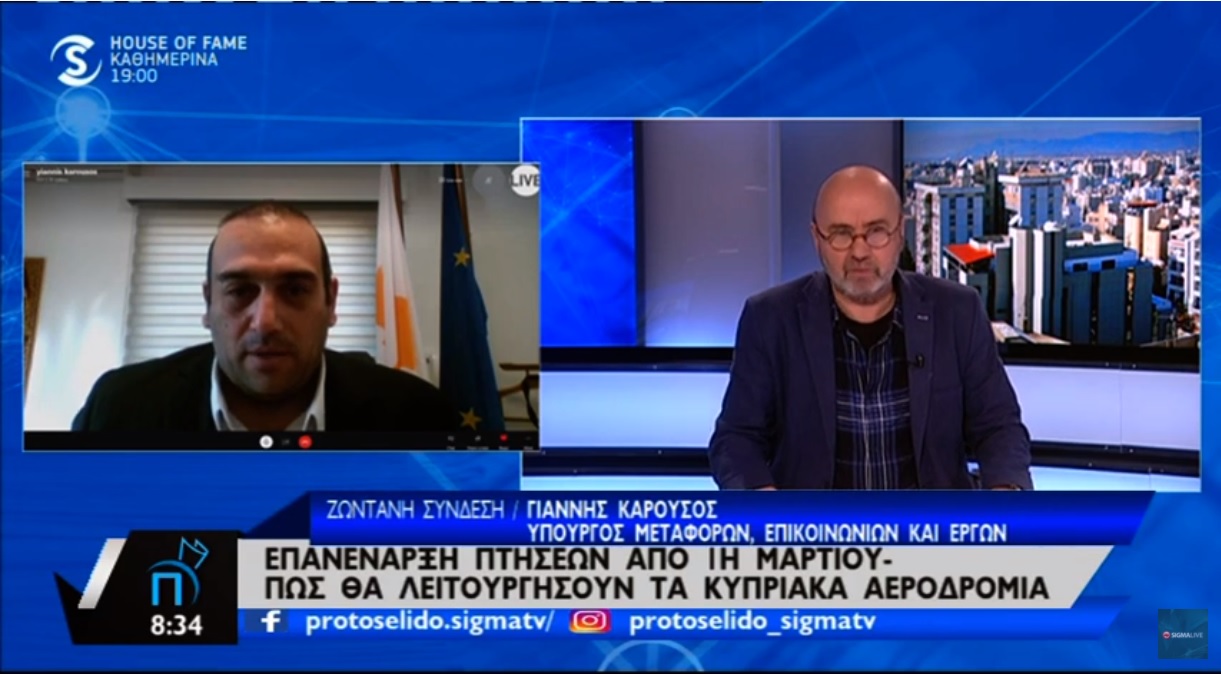 Για τη σταδιακή επανέναρξη των πτήσεων από 1η Μαρτίου, μίλησε στην εκπομπή του ΣΙΓΜΑ Πρωτοσέλιδο, ο Υπουργός Μεταφορών, Γιάννης Καρούσος.