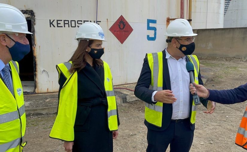 Τις εγκαταστάσεις της Πετρολίνα, στο δρόμο Λάρνακας-Δεκέλειας, όπου διεξάγονται εργασίες αποξήλωσης και κατεδάφισης των δεξαμενών της, επισκέφθηκαν το πρωί η Υπουργός Ενέργειας Νατάσα Πηλείδου και ο Δήμαρχος Λάρνακας Ανδρέας Βύρας, στην παρουσία του Διοικητικού Συμβουλίου της Petrolina.