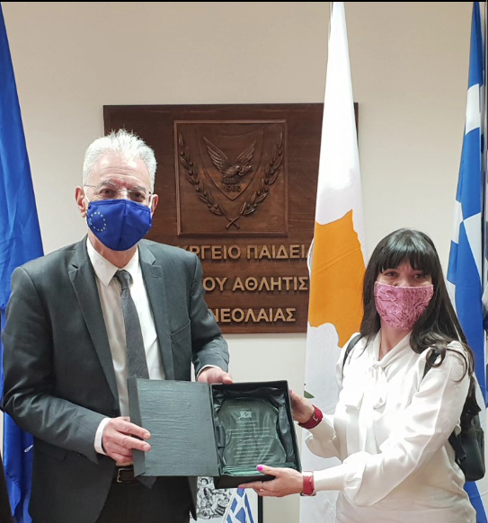 Η εκπαιδευτικός Γεωγραφίας κυρία Φωτεινή Φωτίου στις 19/03/2021, παρέδωσε τιμητική πλακέτα στον αξιότιμον Υπουργόν Παιδείας Αθλητισμού και Νεολαίας κύριο Πρόδρομο Προδρόμου με τα κυριότερα ευρύματα της μελέτης. Επίσης η εκπαιδευτικός, δηλώνει οτι είναι πολύ δύσκολο να αντεπεξέλθεις σε συνθήκες πανδημίας ομως οταν υπάρχει θέληση οι μαθητές μπορούν να αναπτύξουν δεξιότητες περαν απο αυτές της διδακτέας ύλης.