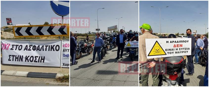 Με πανό και πλακάτ, που αναγράφουν ότι «η Αραδίππου δεν είναι η συτζιά του μαύρου», διαμαρτυρήθηκαν οι κάτοικοι της περιοχής, για την δημιουργία του ασφαλτικού στην περιοχή Κόσιη-Αραδίππου.