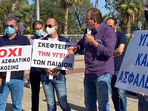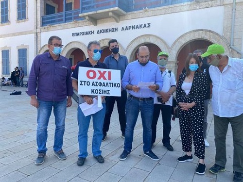Mετά τις κινητοποιήσεις που ήδη έχουν γίνει τοπικά (Καλαβασό, Αραδίππου-Κόσιη), πραγματοποιήθηκε σήμερα ακόμα μια εκδήλωση η οποία έστειλε το μήνυμα πως η Λάρνακα δεν θα ανεχθεί την εγκατάσταση βιομηχανικών μονάδων παραγωγής ασφαλτικού.