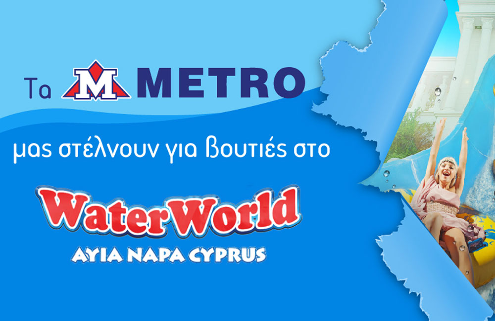 Με αγορές €50 και άνω σε μία απόδειξη από τα METRO, παίρνετε ένα Δωροκουπόνι για μέχρι και 50% έκπτωση στο εισιτήριο εισόδου για 4 άτομα, στο WaterWorld Waterpark στην Αγία Νάπα.