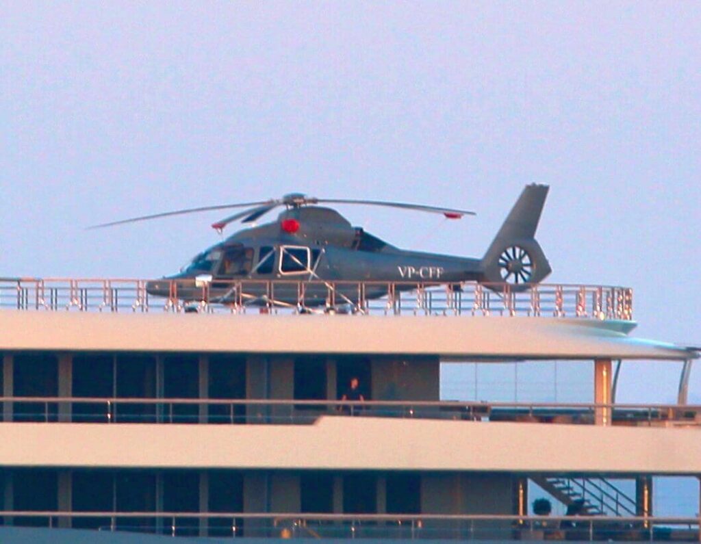 Το 136 μέτρων Mega yacht έχει δύο ελικοδρόμια και ένα ελικόπτερο πάνω του, τύπου Airbus H155 του οποίου η αξία υπολογίζεται στα 10 εκατομμύρια ευρώ.