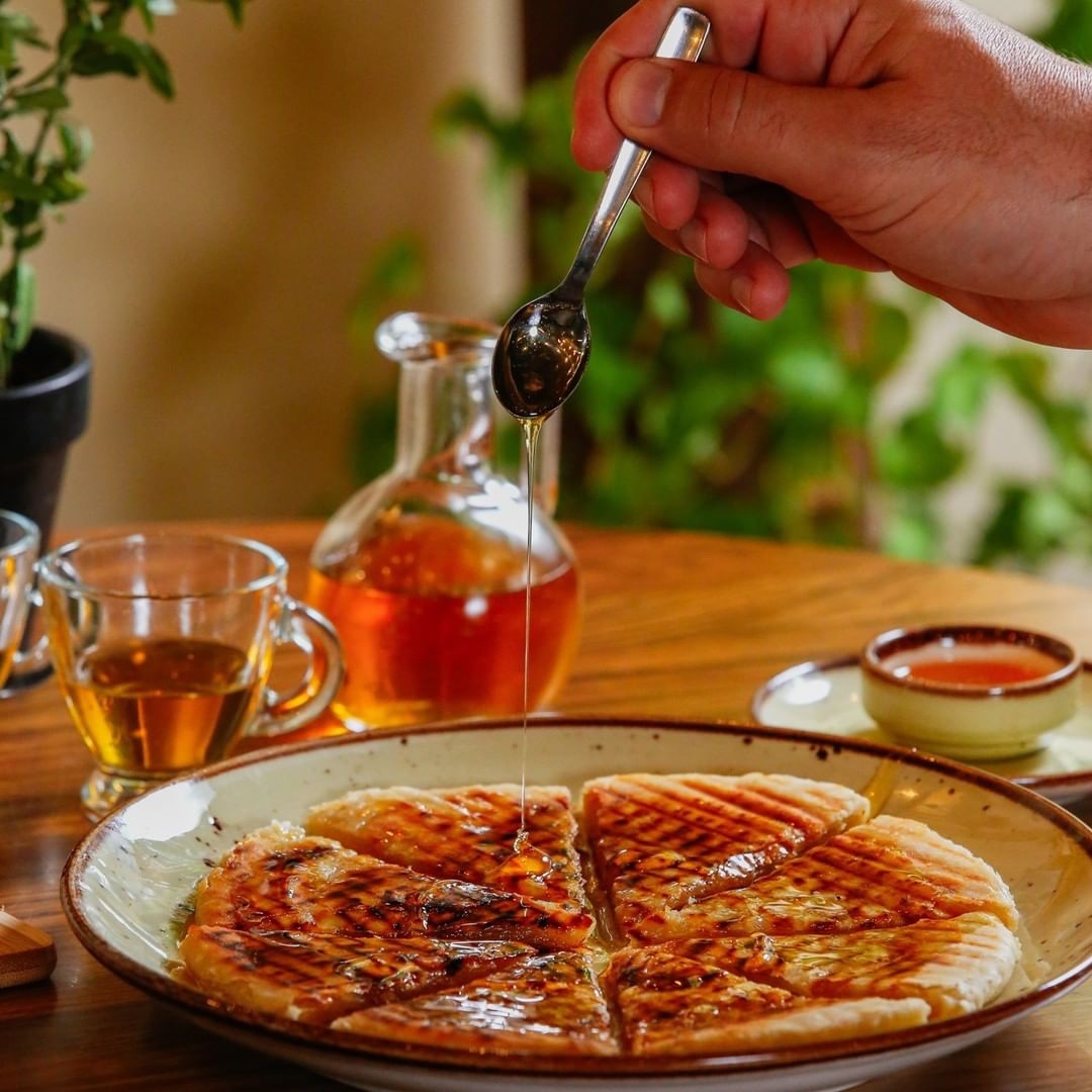 Μετά από τόσο περπάτημα νιώθουμε την ανάγκη να αναπληρώσουμε την ενέργεια που χάσαμε και αποφασίζουμε να δοκιμάσουμε κάτι γλυκό. Το γλυκό της ημέρας είναι γαλακτομπούρεκο αλλά ακόμα δεν έχει βγει από τον φούρνο. Η δεύτερη επιλογή είναι γλυκό του κουταλιού και η τρίτη πίτα της σάτζιης με μέλι η σοκολάτα. Η απόφαση μας να πάμε με την τρίτη επιλογή μας δικαιώνει. Μια λαχταριστή σπιτική πίτα της σάτζιης με μέλι έρχεται σε πολύ λίγο τραπέζι μας. Με την πρώτη μπουκιά η γεύση μας απογειώνεται. Ολόφρεσκη, όσο πρέπει τραγανή, ζεστή και ισορροπημένα γλυκιά η κάθε μπουκιά μας κάνει να παραμιλάμε. Μόλις ανακαλύψαμε έναν ακόμα λόγο να επιστρέψουμε στο εν λόγω μαγαζί σύντομα. Τελικά η πίτα της σάτζιης δεν αναπλήρωσε μόνο την ενέργεια που χάσαμε με το περπάτημα, αλλά μας έδωσε και λίγη παραπάνω ώστε να μπορέσουμε να ανταπεξέλθουμε στις δύσκολες απαιτήσεις της εβδομάδας που ήρθε. Μια δοκιμή θα σας πείσει.