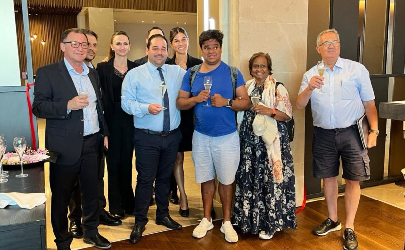 Σε μια σεμνή τελετή στο lobby του Radisson Blu, η διεύθυνση και το προσωπικό του ξενοδοχείου τίμησε το Βρετανό πελάτη του Seneka Yaddehige για την αφοσίωση και την προτίμηση του στο ξενοδοχείο της πόλης μας καθώς διαμένει σ’ αυτό 730 ημέρες δηλαδή 2 χρόνια όταν και έκανε το πρώτο του check in στις 08/11/2020.