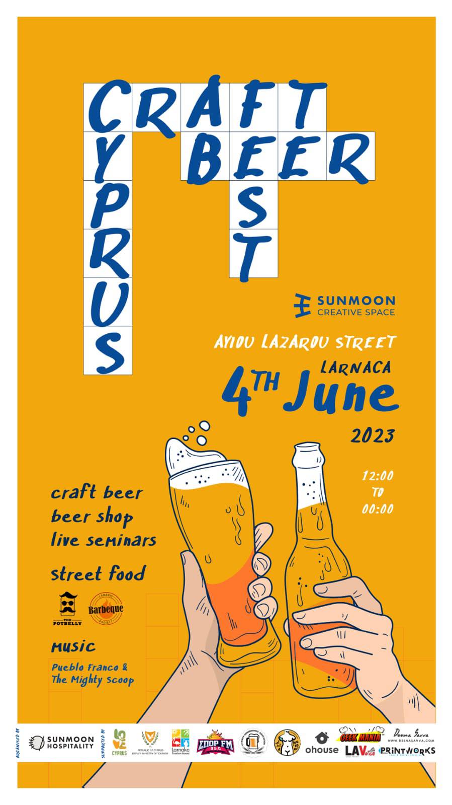 Cyprus Craft Beer Festival 2023, με 10 κυπριακά μικροζυθοποιεία από όλη την Κύπρο, που θα βρεθούν στην καρδιά της Λάρνακας και θα μοιράζουν μπύρα για δοκιμή και όχι μόνο.