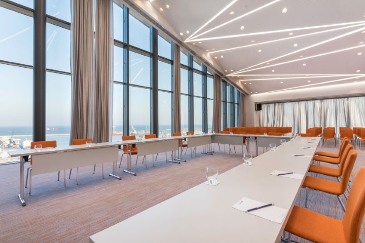 Διαθέτει επτά πολυτελείς χώρους συνεδριάσεων με μέγιστη χωρητικότητα 140 ατόμων, οι οποίοι διακρίνονται για τον αρχιτεκτονικό σχεδιασμό τους και την ενσωμάτωση προηγμένης τεχνολογίας. Οι αίθουσες εκτείνονται σε 370 τ.μ. και αντικατοπτρίζουν την ευελιξία των χώρων να προσαρμόζονται σε εξαιρετικές περιστάσεις, καθώς συνοδεύονται από μια εξειδικευμένη ομάδα επαγγελματιών, που διασφαλίζουν την ομαλή διεξαγωγή των εκδηλώσεων. Στην κορυφή των 16 ορόφων του έχει πανοραμική θέα τη θάλασσα, προσφέροντας ένα εκπληκτικό φόντο για κάθε είδους περίσταση.