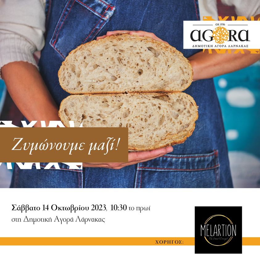 Κοπιάστε να ζυμώσουμε και τα δοκιμάσουμε φρέσκα ψωμιά σε μια εκδήλωση ιδανική για μικρούς και μεγάλους, το Σάββατο, 14 Οκτωβρίου 2023 στις 10:30 π.μ. στο χώρο της νέας Δημοτικής Αγοράς Λάρνακας.
