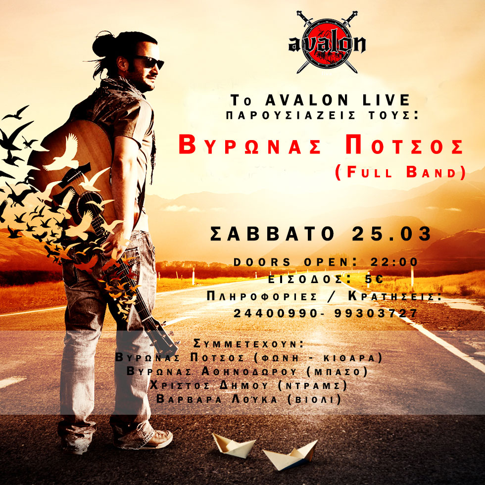 Ο Βύρωνας Ποτσος σε Full Band μαζί μας ξανά στο Avalon αυτό το Σάββατο! Εκτελέσεις δικών του…Διαβάστε περισσοτερα