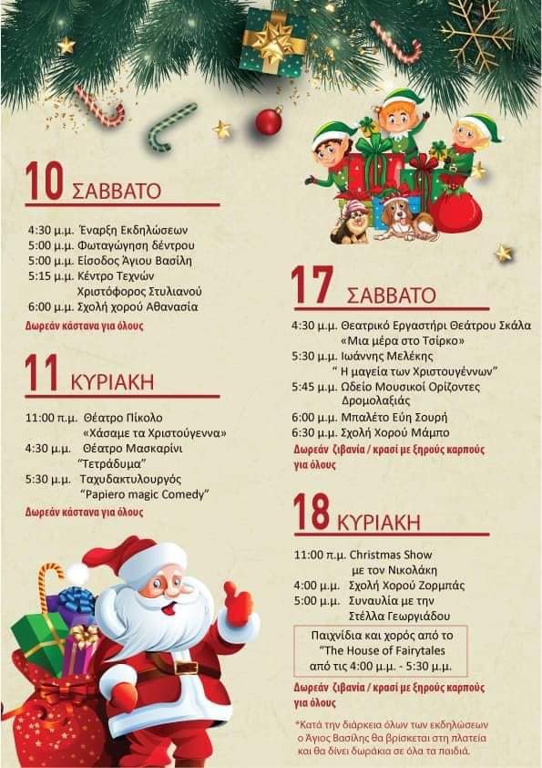 Κατά τη διάρκεια της εκδήλωσης ο Άης Βασίλης θα βρίσκεται στην πλατεία και θα δίνει δώρα στα παιδιά.